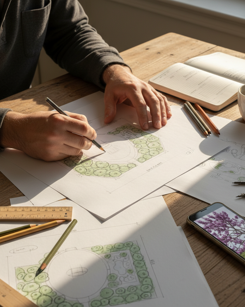Nous analysons terrain, lumière et éléments naturels afin de concevoir une étude personnalisée, en parfaite harmonie avec votre demande.